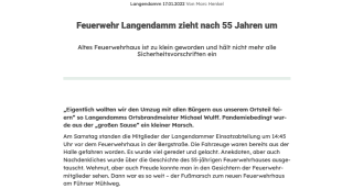 Nach fast 57 Jahren erfolgt der Umzug der Feuerwehr ins neue