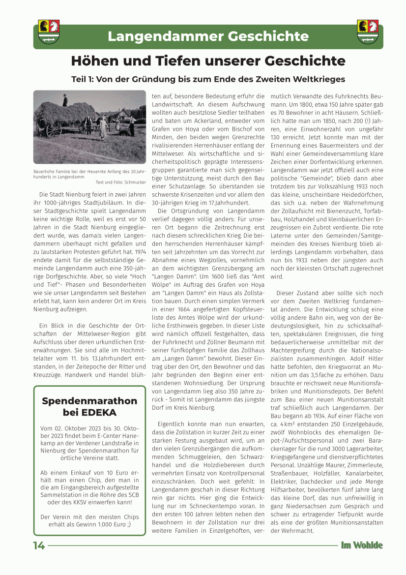 135. Ausgabe Nachrichten für Langendamm "Im Wohlde" erschienen... WEITERLESEN + Archiv HIER