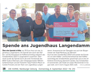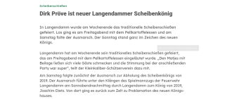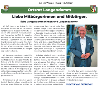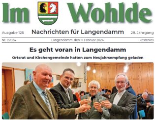 Informationsticker:1000 Jahre Nienburg / WeserNEU: Susi´s Mühlencafe´ im ÄrztehausSebastian Meyer neuer 1.Vorsitzender der Schwarzen Garde06.-08.09. Scheibenschießen LangendammSCHEIBENKÖNIG 2025: Dr. Marvin Schinkel11.09.2025 Ortsratssitzung135. Ausgabe Nachrichten für Langendamm "Im Wohlde" erschienen... WEITERLESEN + Archiv HIER